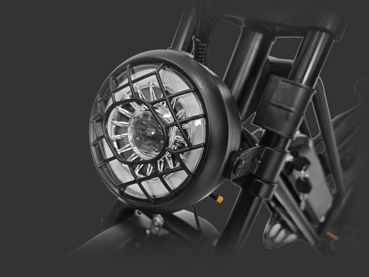 フロントLEDヘッドライトは前方を明るく照らし、暗い場所でも安全に走行できるようサポートします。