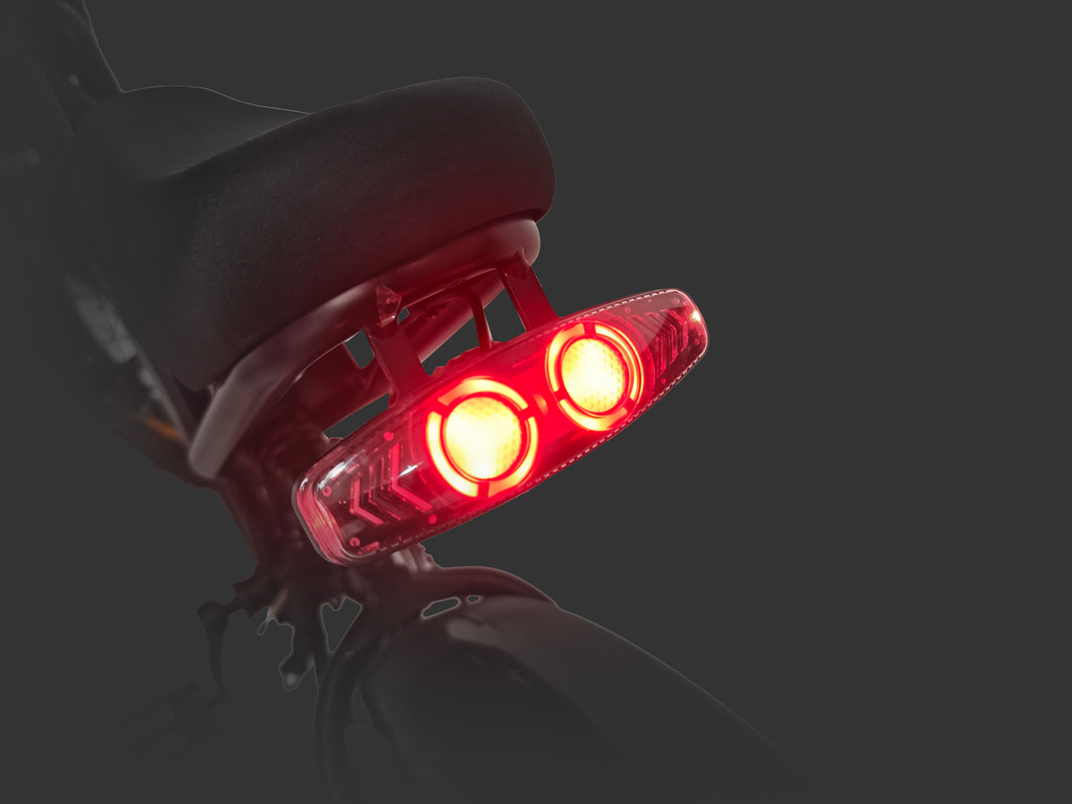 後部LEDテールライトは、夜間走行や暗い場所でも視認性を高め、後方から自分をはっきりと見えるようにします。