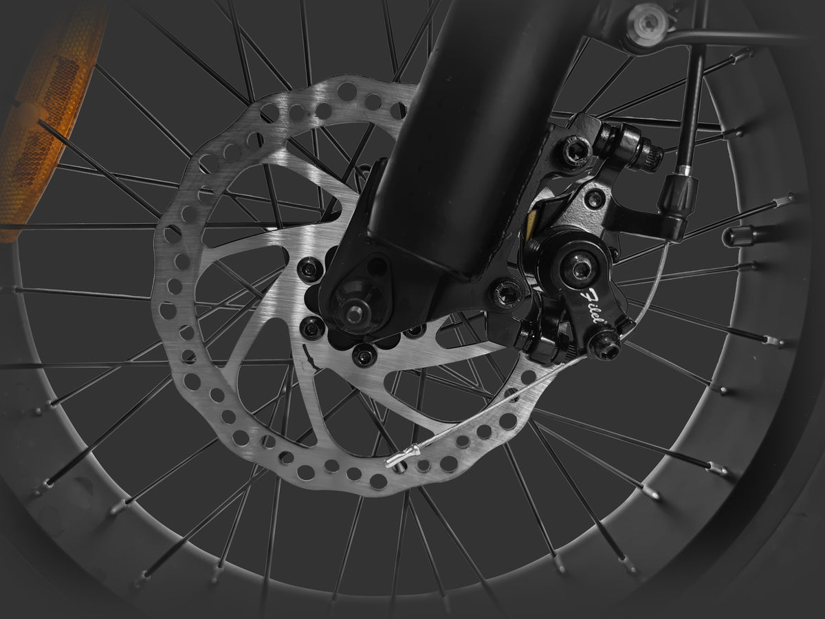 前輪ディスクブレーキは強力で信頼性の高い制動力を提供し、急な坂道や混雑した道でも安全に停止できます。
